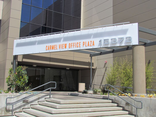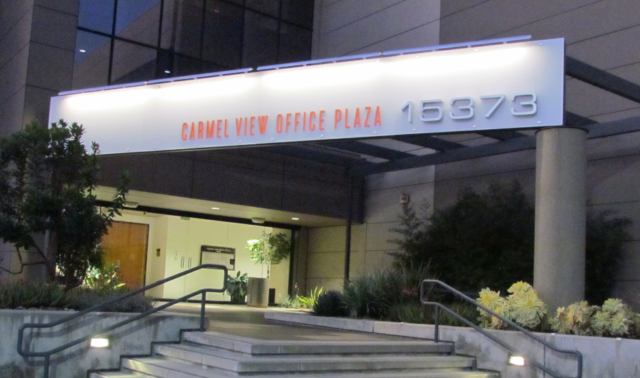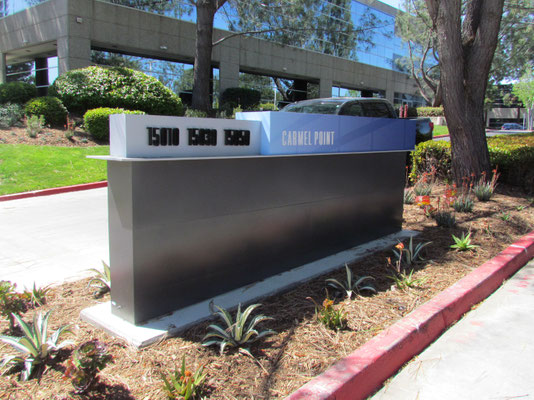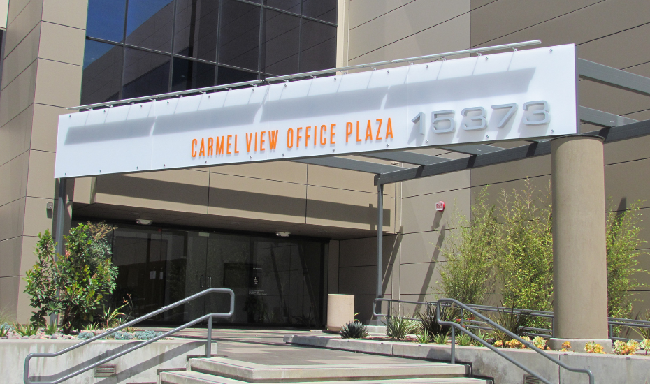 For Carmel View Office Plaza, a prominent Class B office complex in San Diego’s Carmel Mountain neighborhood, Landmark Signs delivered a comprehensive signage package that combined visibility, functionality, and professional appeal. The project included multiple frosted illuminated Monument Signs that anchor the property, a custom illuminated awning, parking regulatory signs, a maximum clearance sign, and directional signage throughout the plaza.