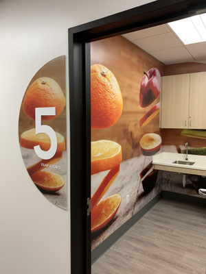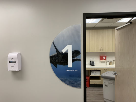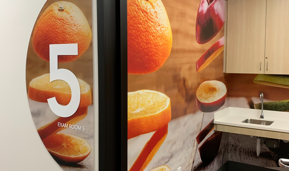The highlight of the project was the custom murals in patient rooms, which transformed clinical spaces into inviting environments that helped patients feel at ease. Combined with clear wayfinding signs and bold exterior Channel Letters, these elements reinforced the clinic’s trusted presence while reflecting compassion, professionalism, and care at every turn.