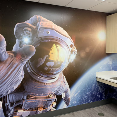 Custom patient room murals that turned sterile walls into welcoming, comforting visuals for a better experience.