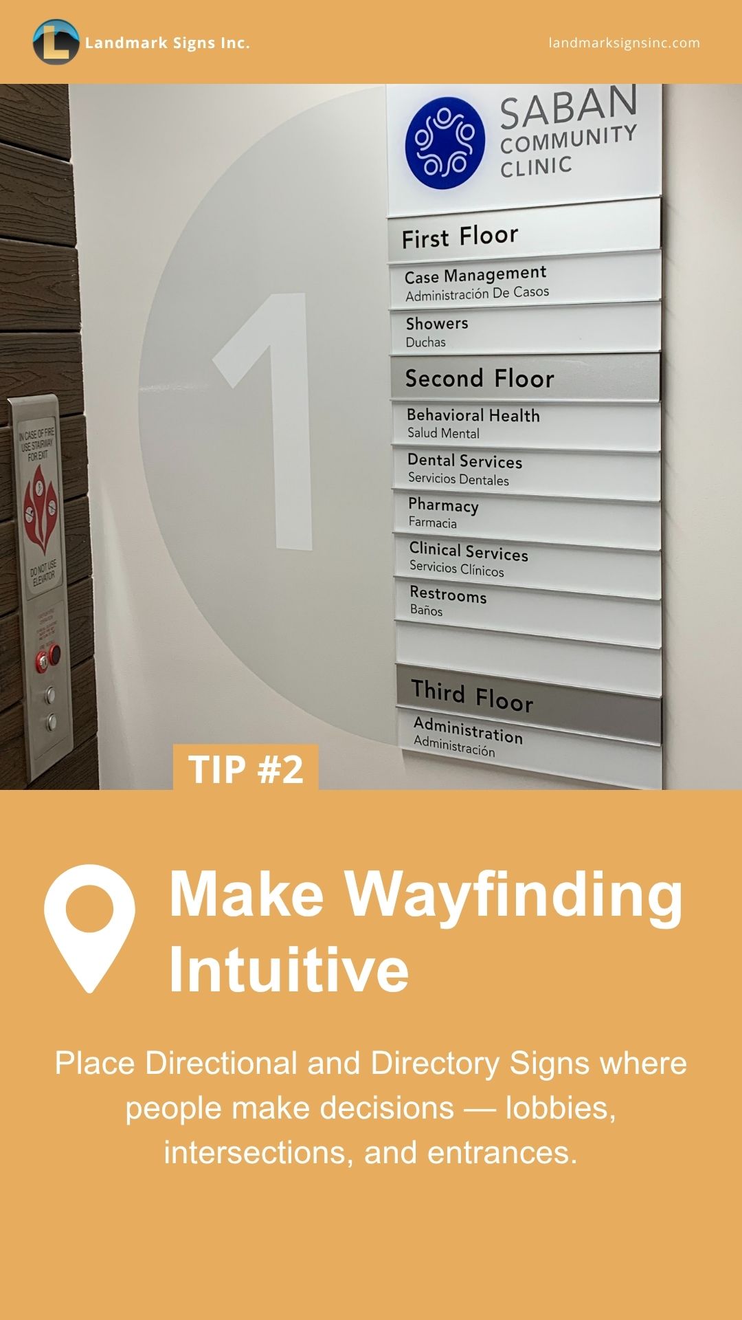 Make wayfinding intuitive – Signs should be placed where decisions are made, such as lobbies, corridors, and intersections. Clear directional cues reduce stress and make navigation effortless.